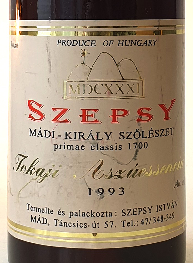 "12% alc. 380 bottles produced. Király near Mád is, I believe, the highest in altitude among the vineyards in which Szepsy owns parcels; it's one of the most famous 1er Crus where some of his most aromatically complex and minerally-deep wines should be stemming from especially in the future... Black tea, dried apricot, pipe tobacco, quite malty milk chocolate, and some minerality, the latter most noticeable in direct comparison with the Nyulas. Highly concentrated, like a solid on the palate, but with very good vinosity... 97+ Points at release, a score I fear this will never live up to again."